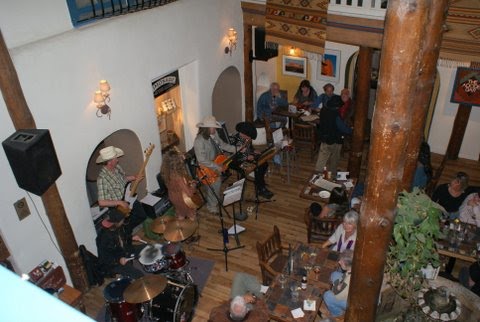 Here's a couple of fun shots of Kim and the Caballeros at The Adobe Bar at The Taos Inn on April 9, 2011... it was our steel player Leonard Kasza's birthday, and these shots (one of the whole band, one centered on Leonard, Kim, and myself doing my best Doug Sahm impersonation) were taken by Leonard's wife Kathy from the balcony. Enjoy!